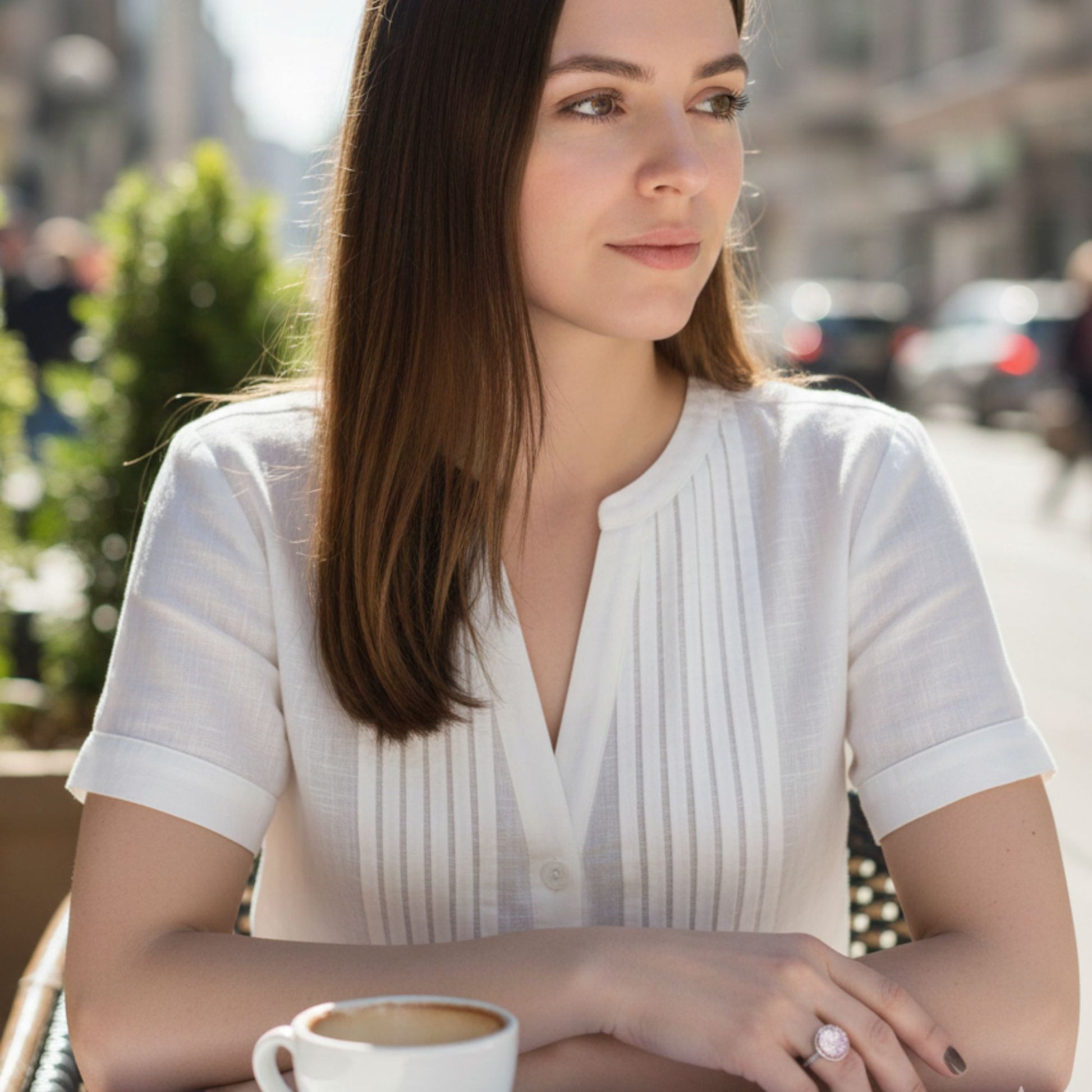 Une touche de douceur et d'éclat à votre main. Cette bague délicate est le complément parfait pour un style chic et discret, aussi bien en journée qu'en soirée. Elle est dotée d'un cabochon en résine de 1,5 cm capturant un magnifique blanc nacré enrichi de cristaux de verre rose gold scintillants, monté sur un anneau en Acier Inoxydable réglable pour un ajustement parfait.