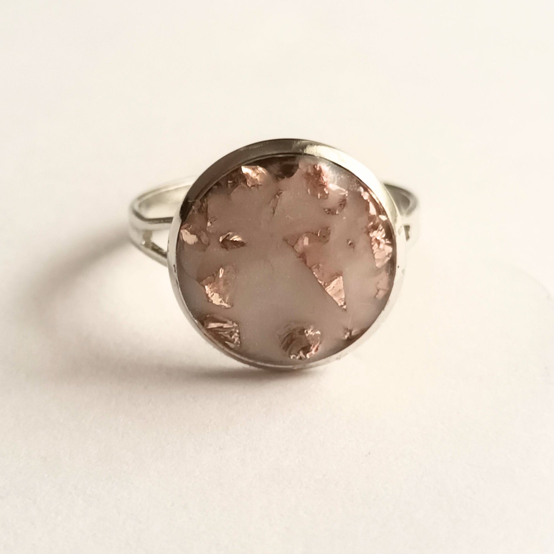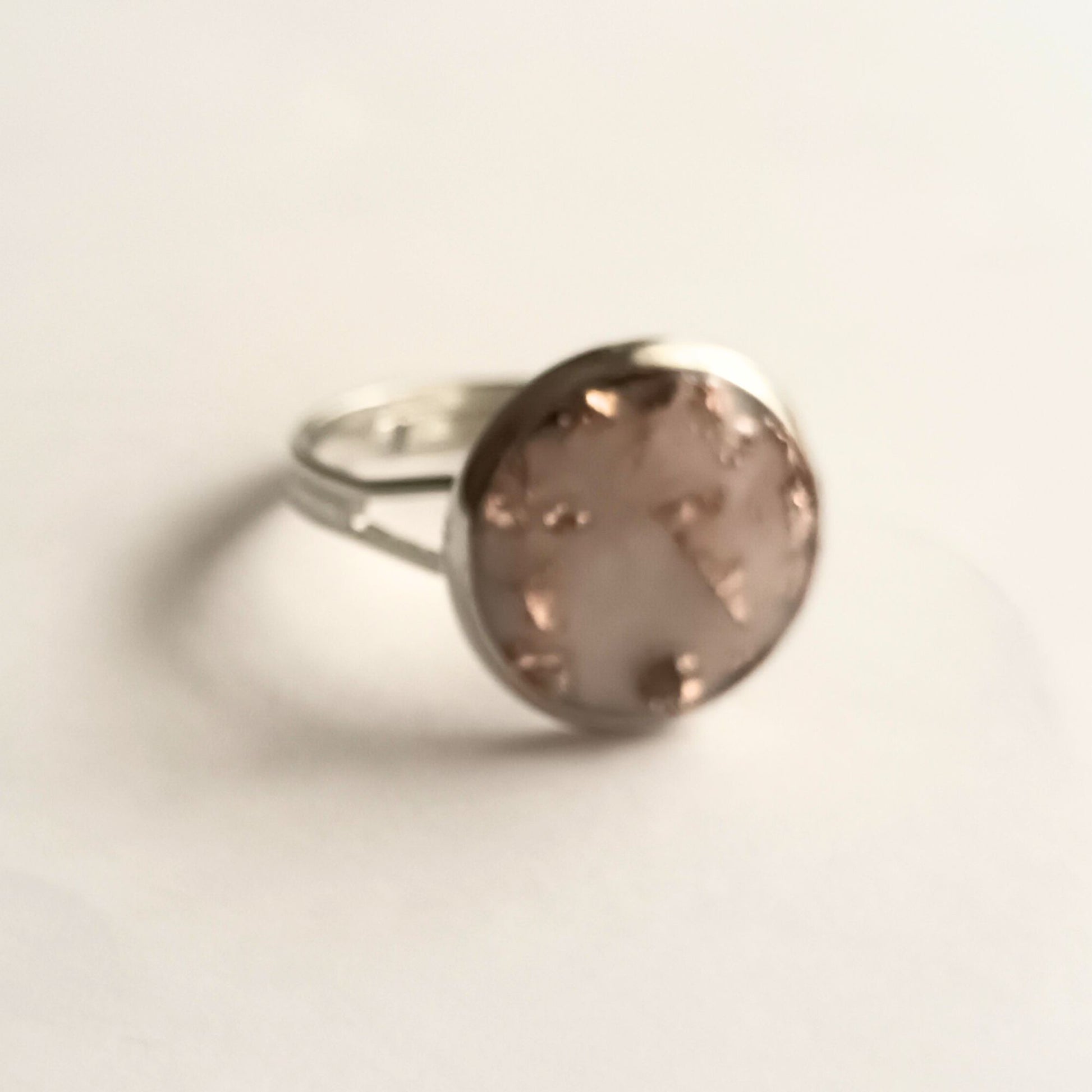 Bague Résine Nacrée et Cristaux Rose Gold- Cabochon 1,5 cm