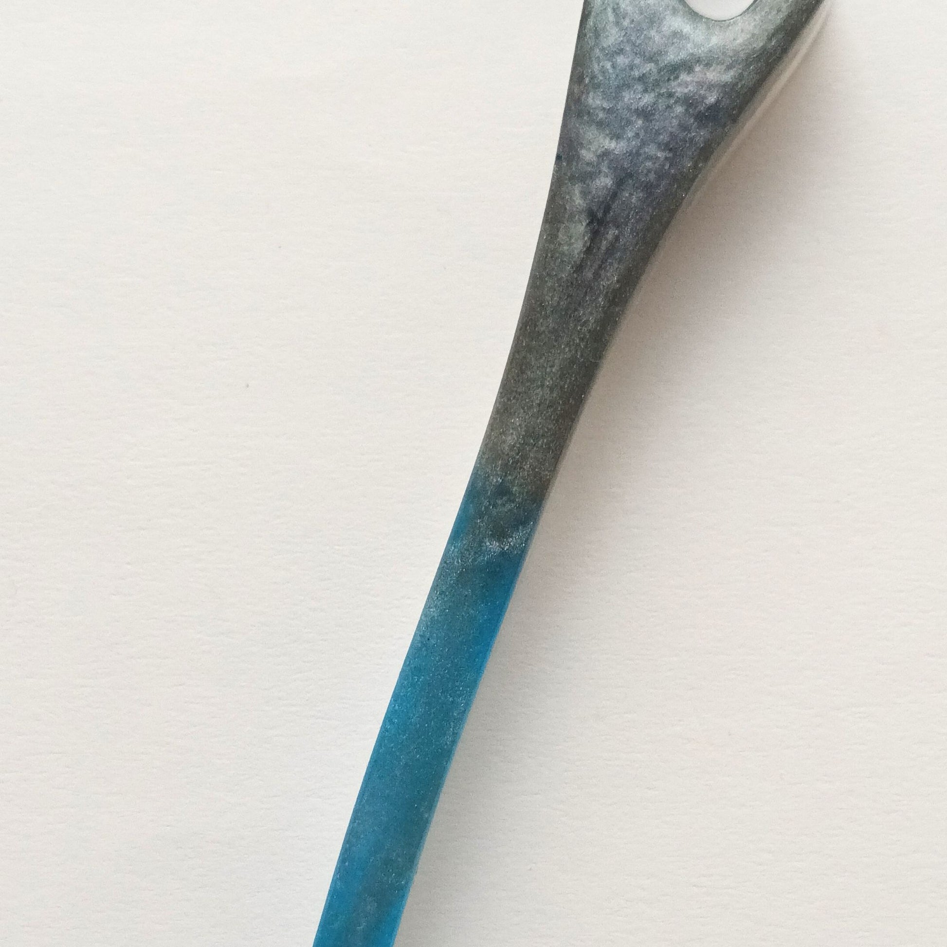 Bâton cheveux résine dégradé gris bleu fourche - Pic coiffure 17cm minimaliste - Accessoire artisanal unique fait main