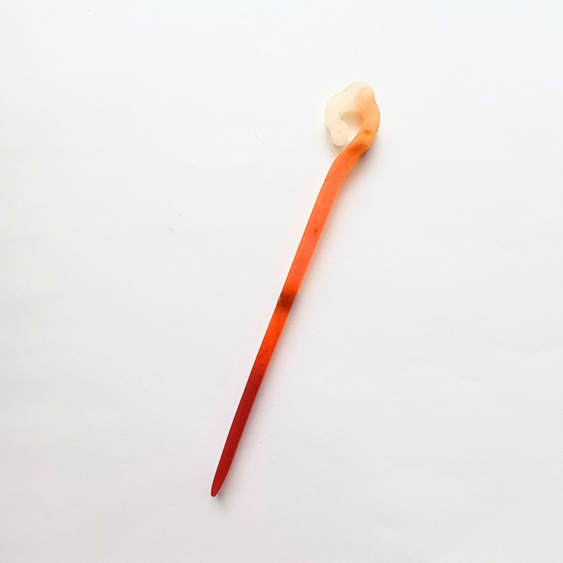 Sublimez votre chignon avec ce Bâton de Cheveux en résine aux reflets Orange Coucher de Soleil, entièrement fait main dans mon atelier.