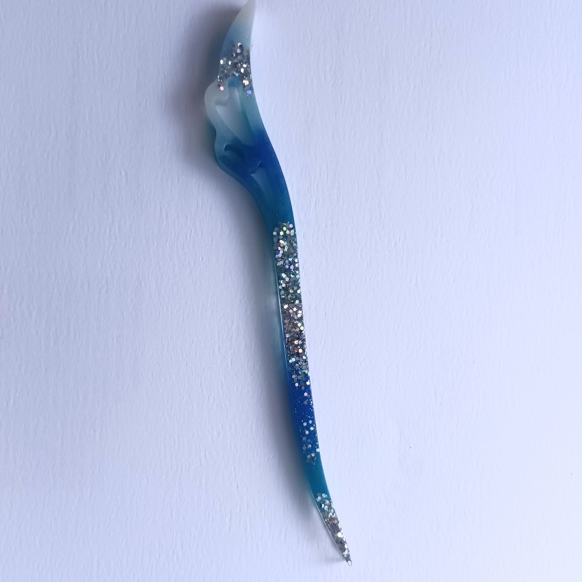 Bâton/Pic à Cheveux Vague Océan et Paillettes - Résine Fait Main