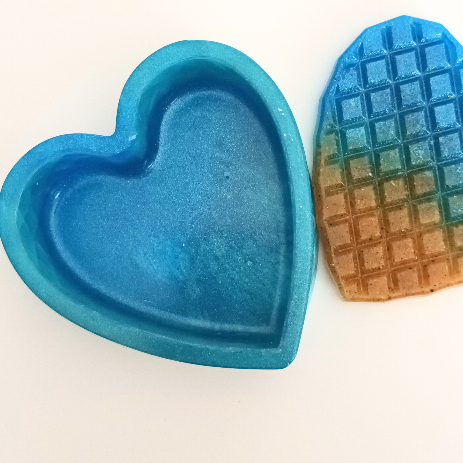 Boîte à bijoux résine océan sable pailleté - Cœur avec couvercle - Rangement artisanal unique fait main