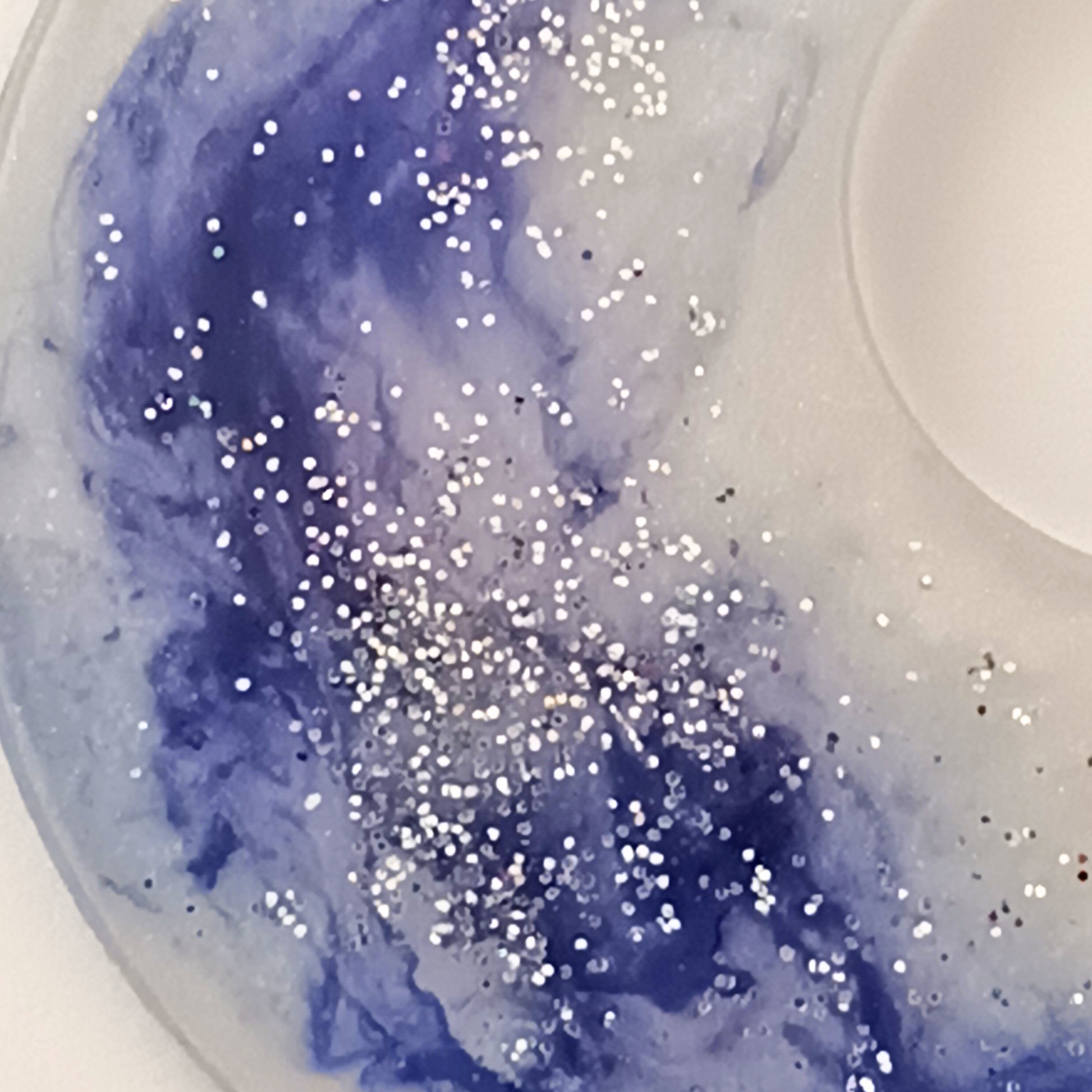 Portez la douceur des nuages ! Sublimez votre style avec ces boucles d'oreilles en résine aux reflets violet, blanc et argenté pailleté, entièrement faites main dans mon atelier.