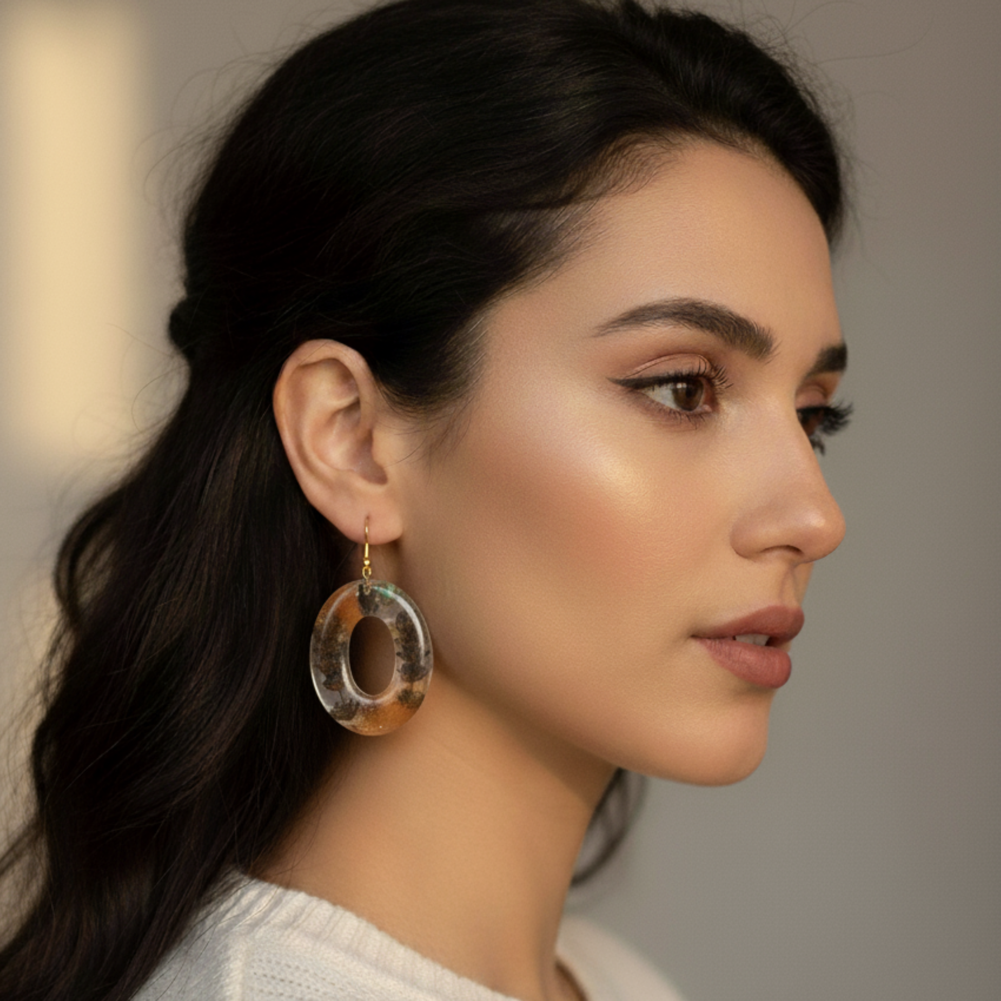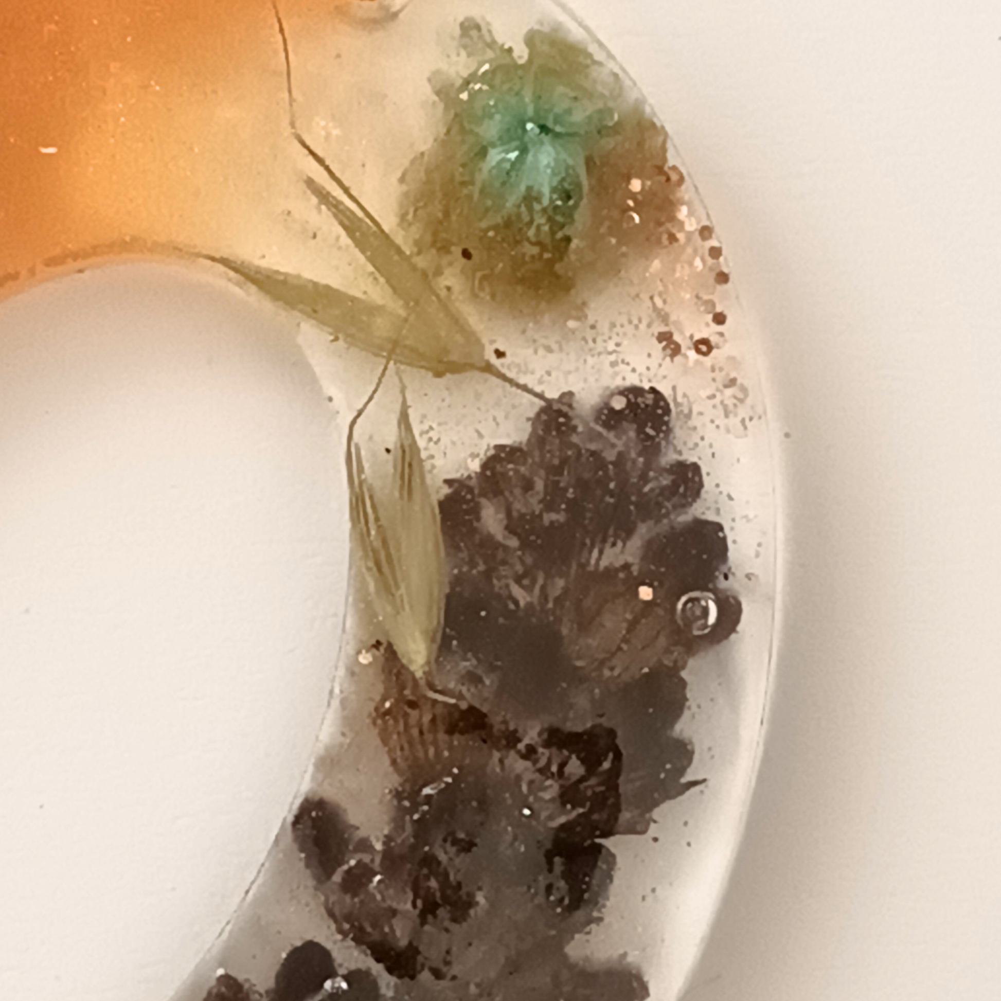 Portez la nature avec poésie ! Sublimez votre style avec ces boucles d'oreilles en résine aux reflets orange et fleurs de lavande séchées, entièrement faites main dans mon atelier.