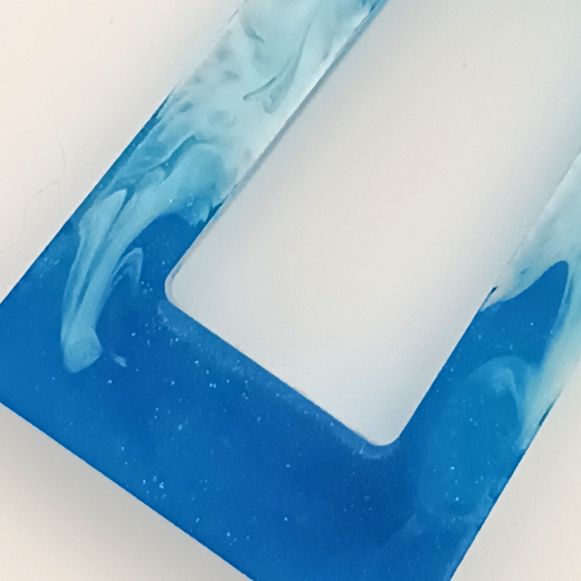 Boucles d'oreilles résine bleu turquoise blanc marbré - Rectangles effet océan ultra-légers - Bijou artisanal unique fait main