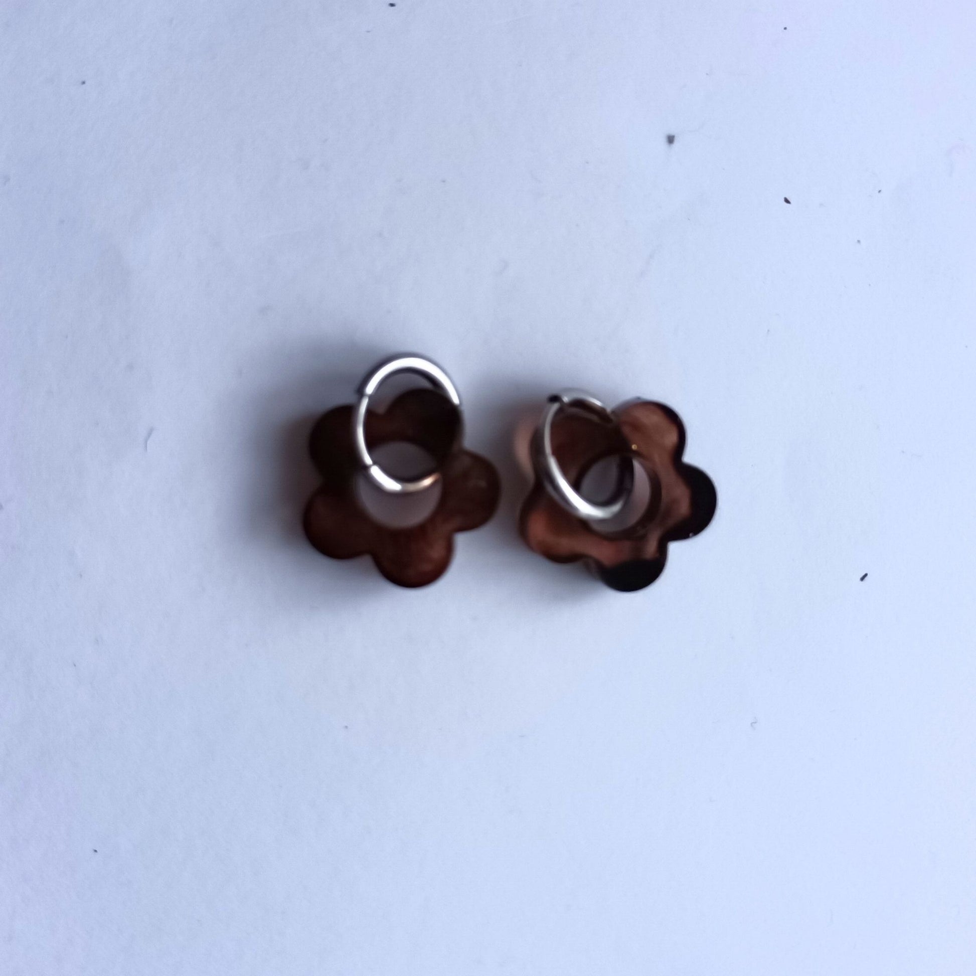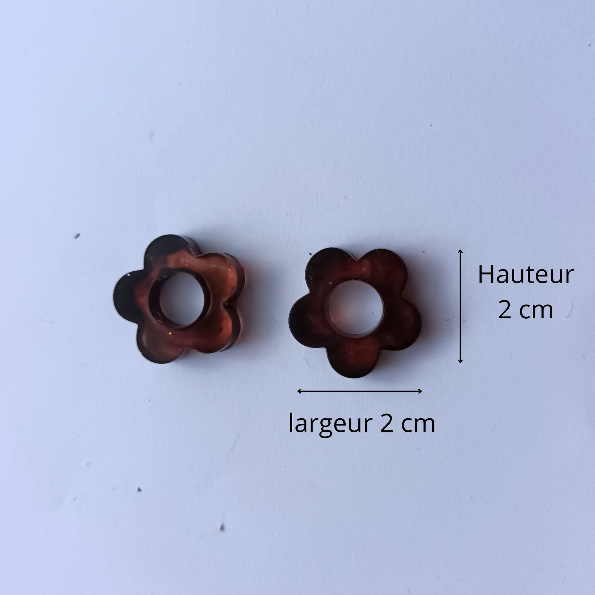 Adoptez un style bohème chic avec ces boucles d'oreilles Créoles Fleur en résine aux reflets Brun Ambré Translucide, entièrement faites main dans mon atelier.