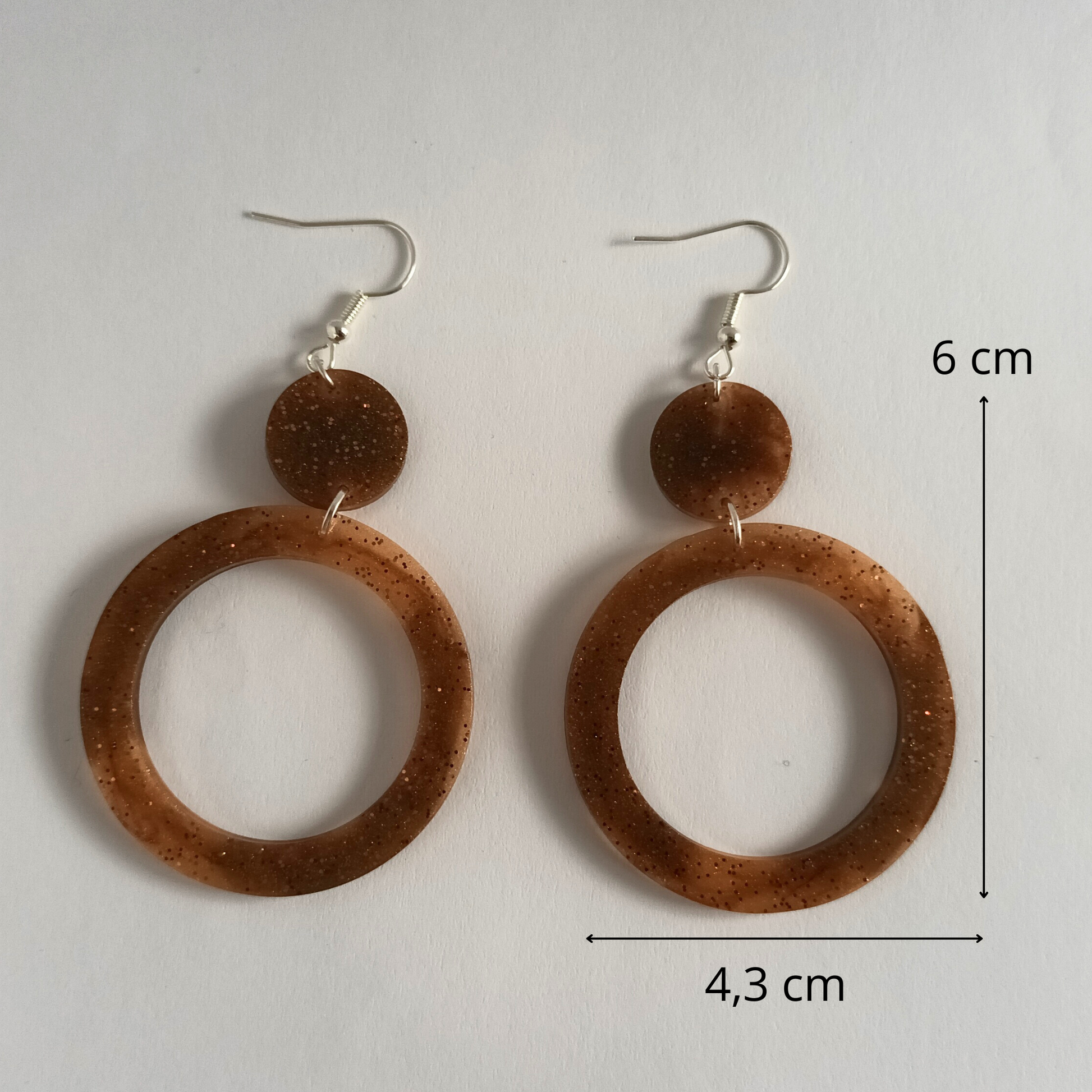 Boucles d'oreilles résine dorée pailletée - Bijou artisanal fait main