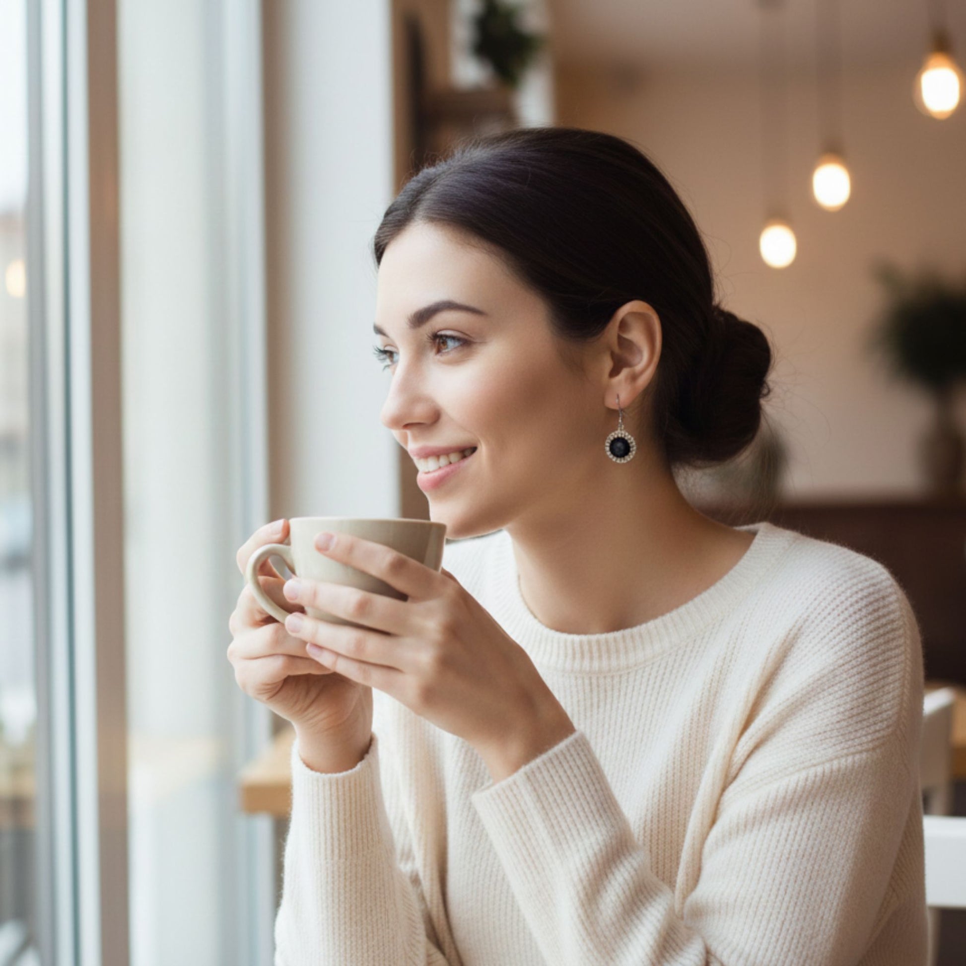 Contraste Équilibré : L'association du Mica noir profond et des cristaux de verre argenté offre un subtil effet scintillant, facile à porter tous les jours.