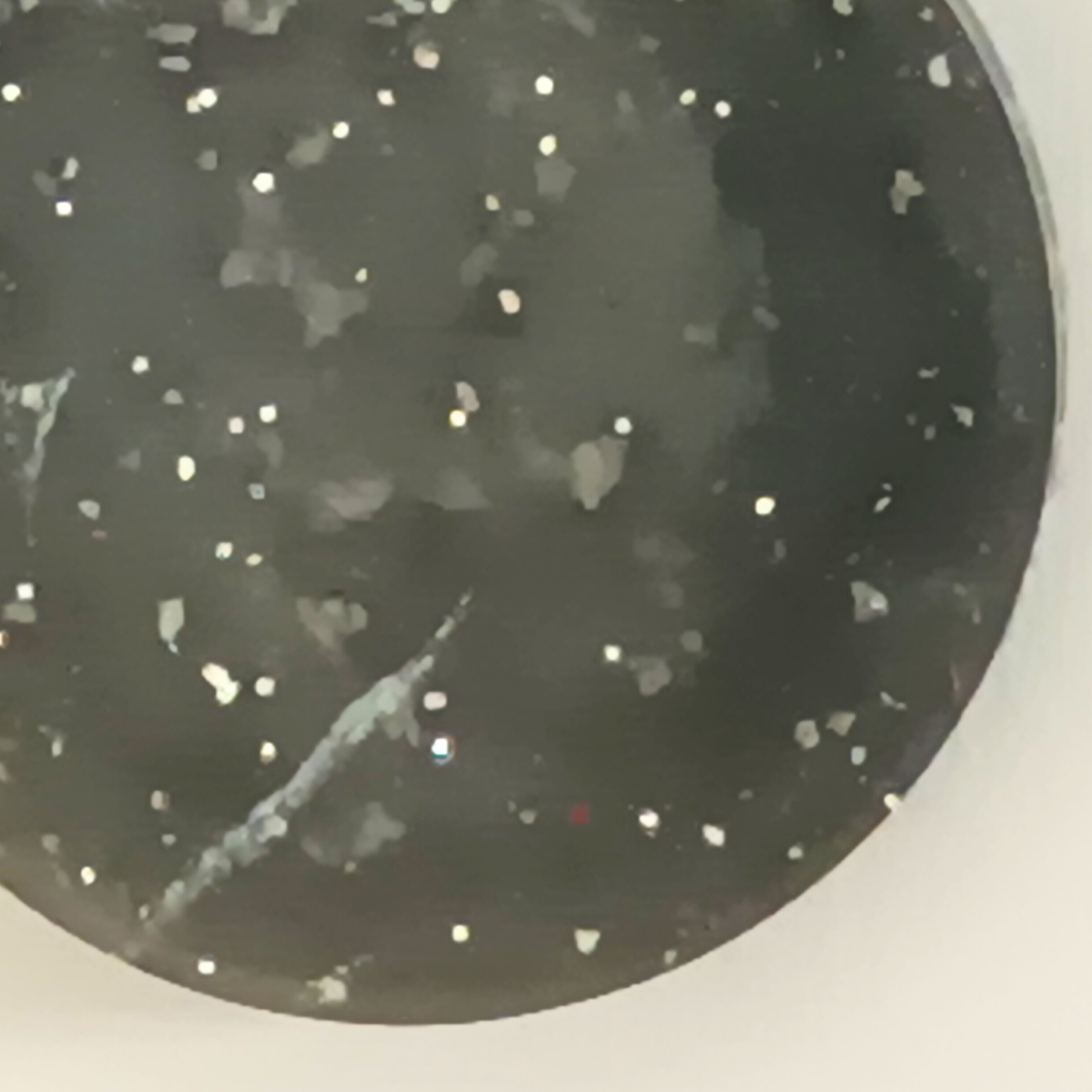 Teinte : noir profond parsemé de paillettes argentées délicates, créant un effet nuit étoilée élégant et sophistiqué.