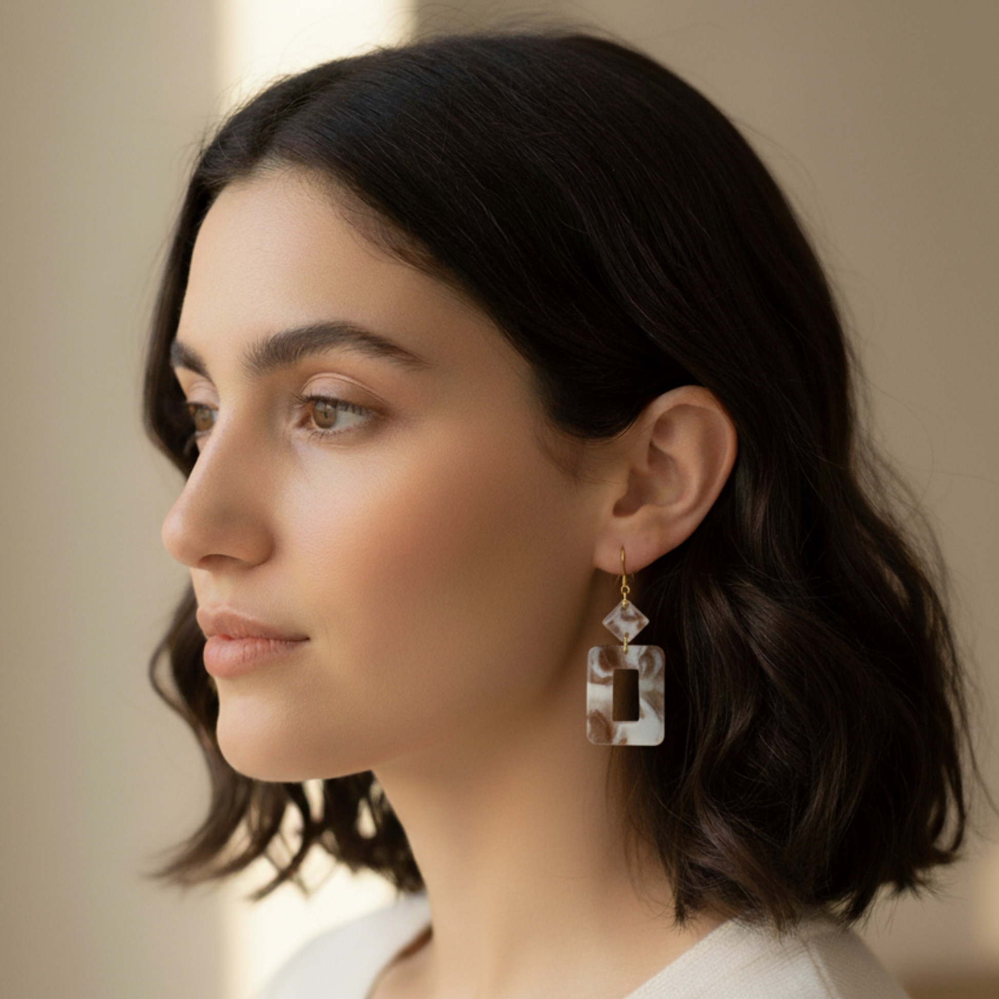 Chaque paire de boucles d'oreilles est créée avec amour dans mon atelier en France. Je coule la résine à la main en créant des marbrures uniques et façonne chaque élément avec soin. Cette création est unique : je ne réalise jamais deux fois le même modèle. Vous serez la seule à posséder ce bijou exclusif !