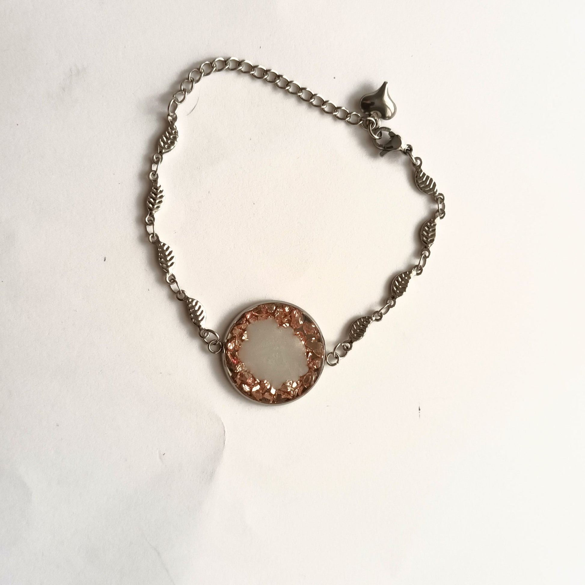 Bracelet Résine Mica Blanc & Cristaux Rose Gold