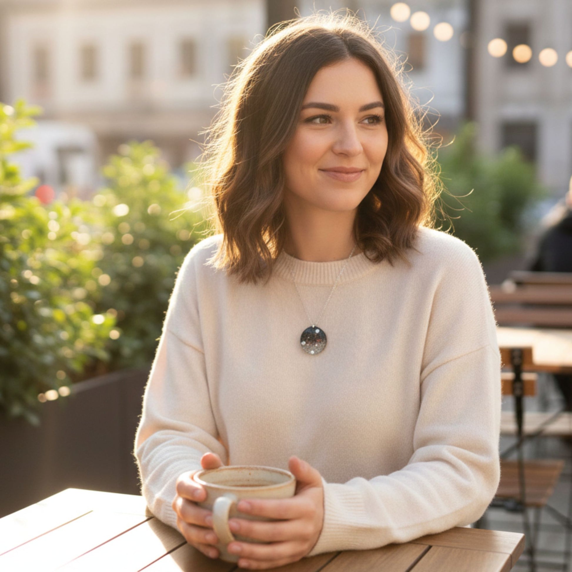 Chaque pendentif est créé avec amour dans mon atelier en France. Je coule la résine à la main, mélange le mica noir et insère les inclusions argentées délicatement. Les légères variations font le charme unique de votre bijou - il n'en existe pas deux identiques !