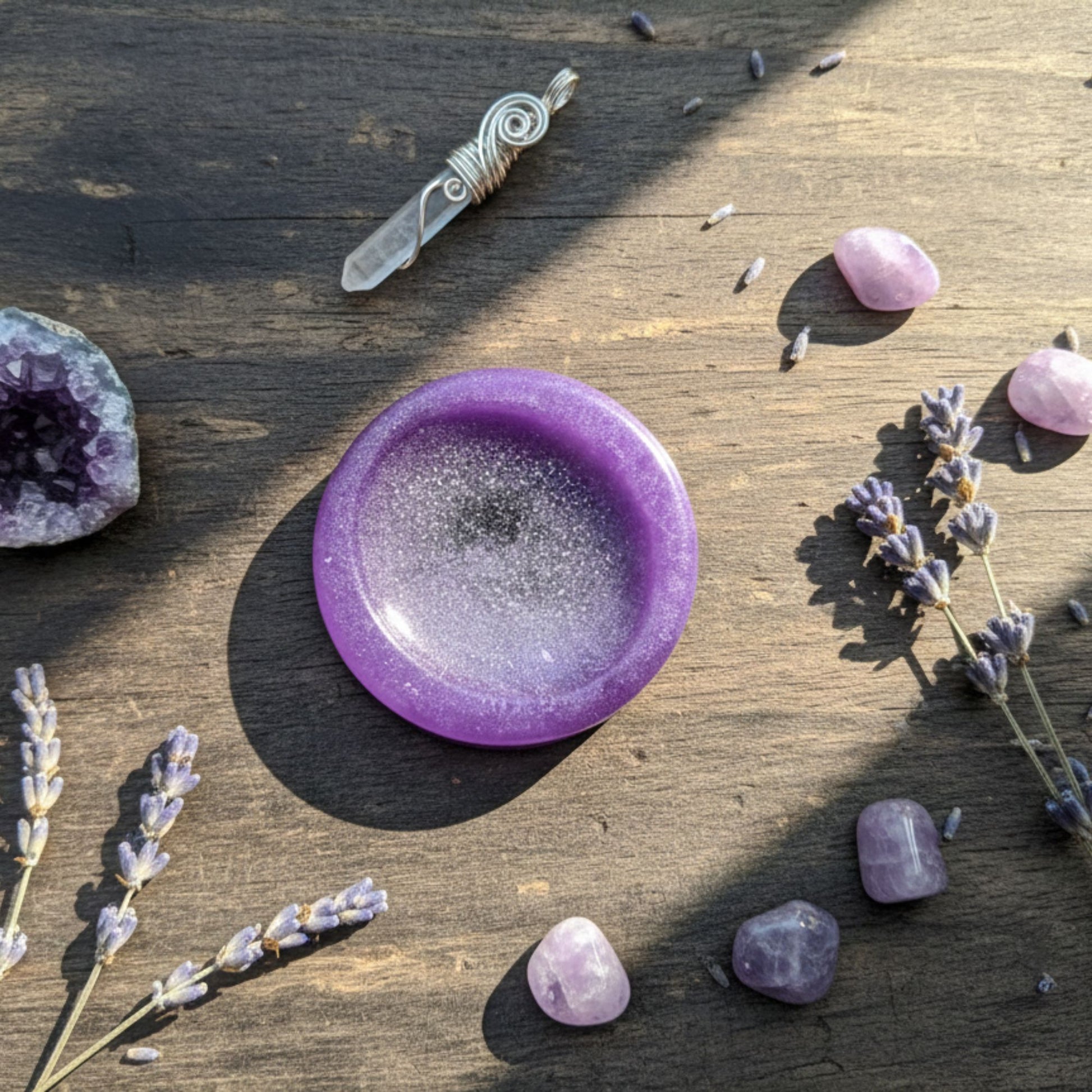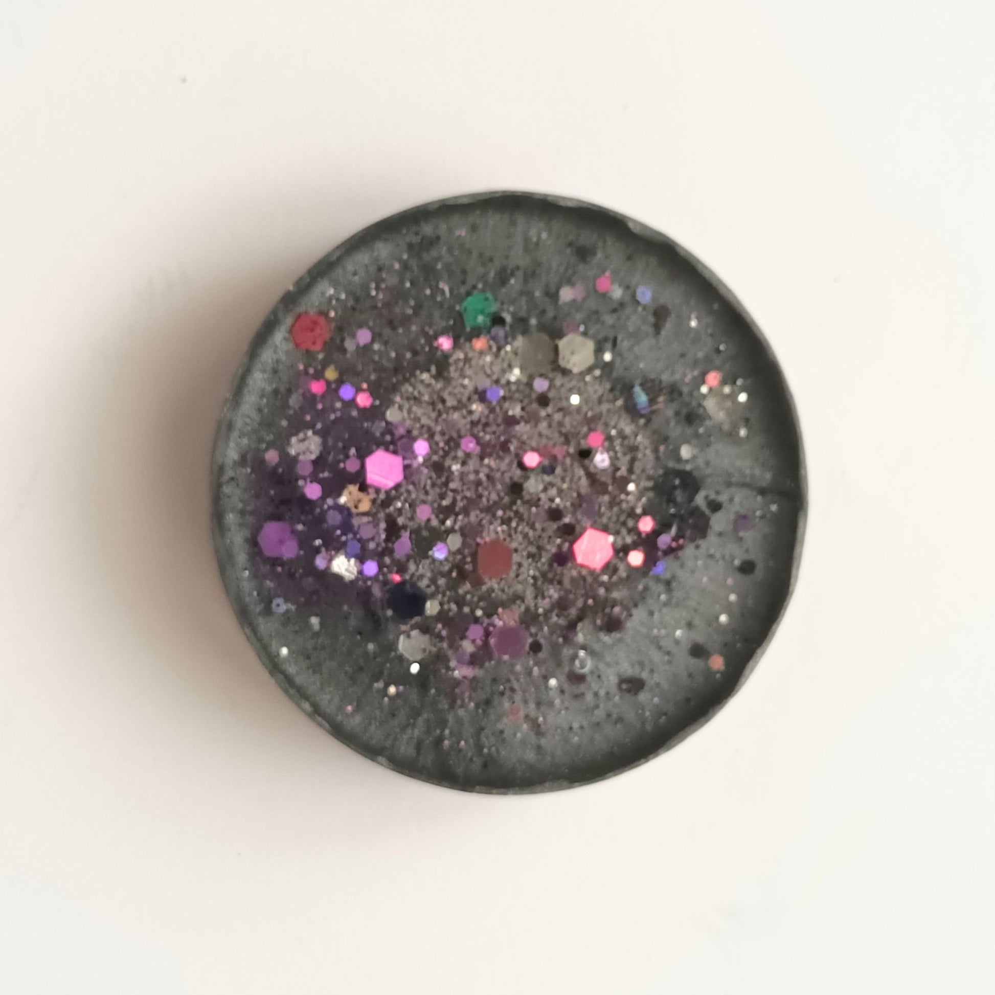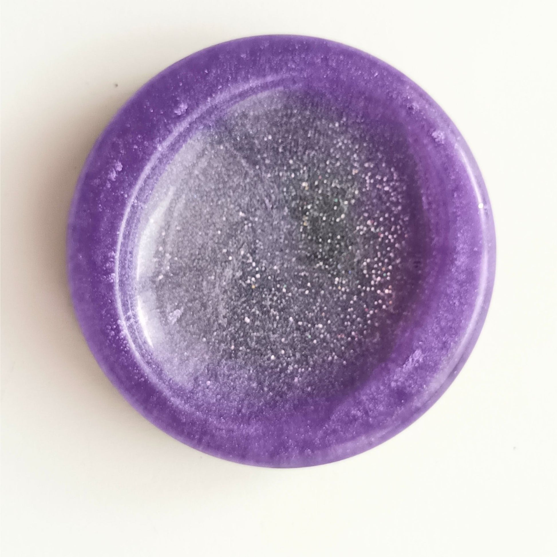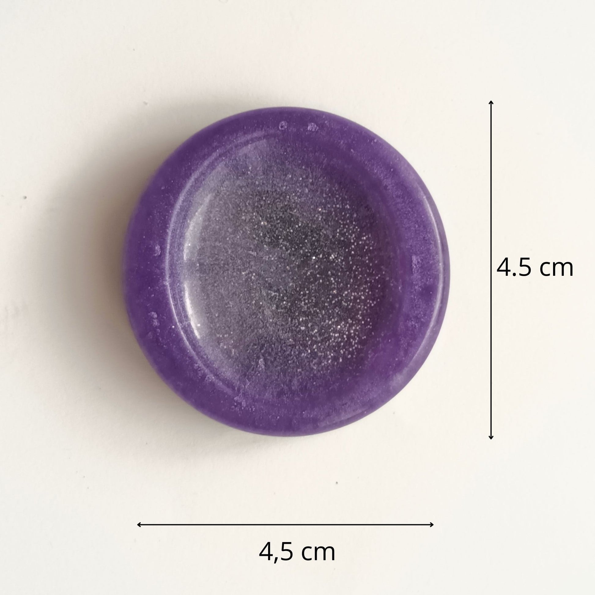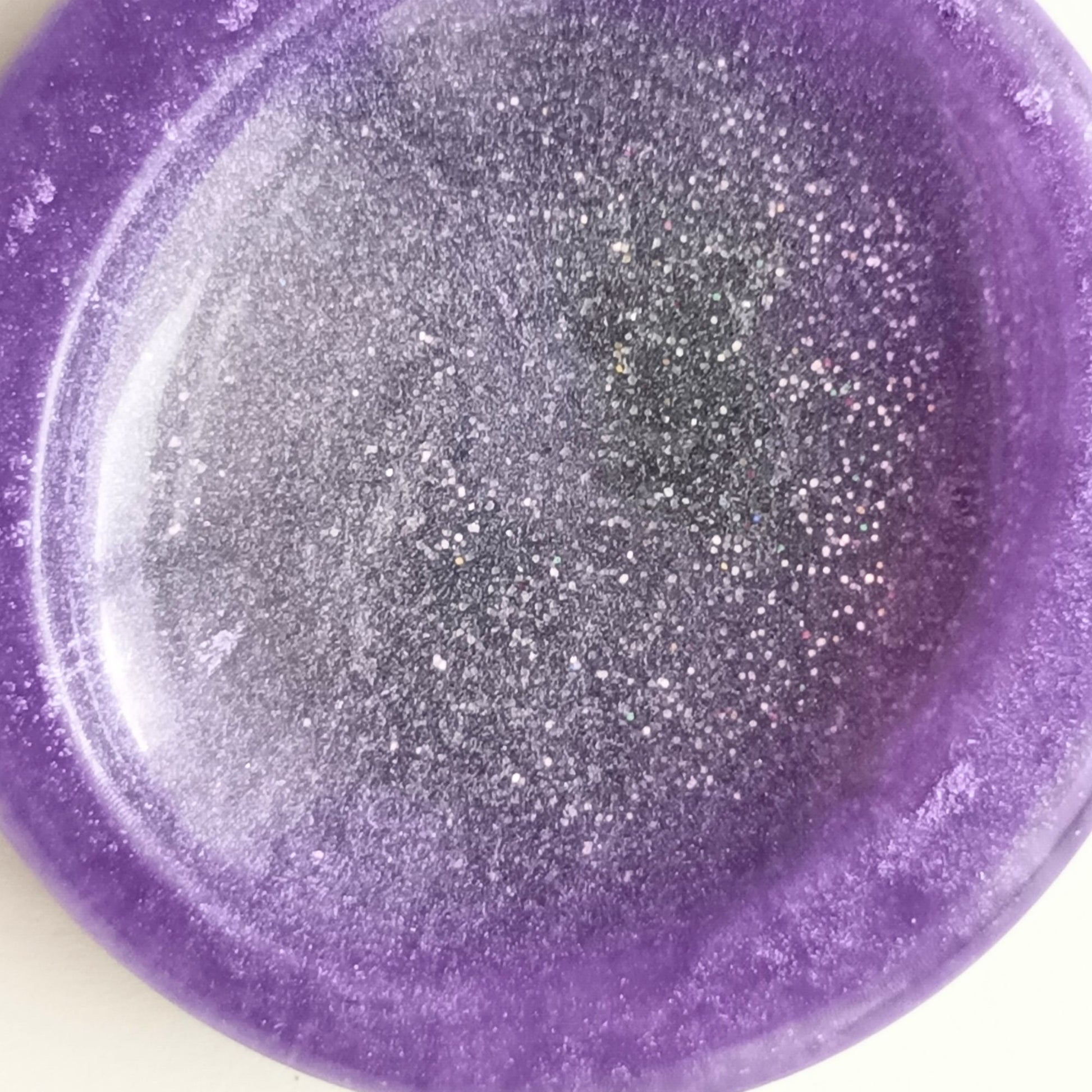 Matériaux : Résine époxy, Mica violet améthyste, Paillettes fines argentées.