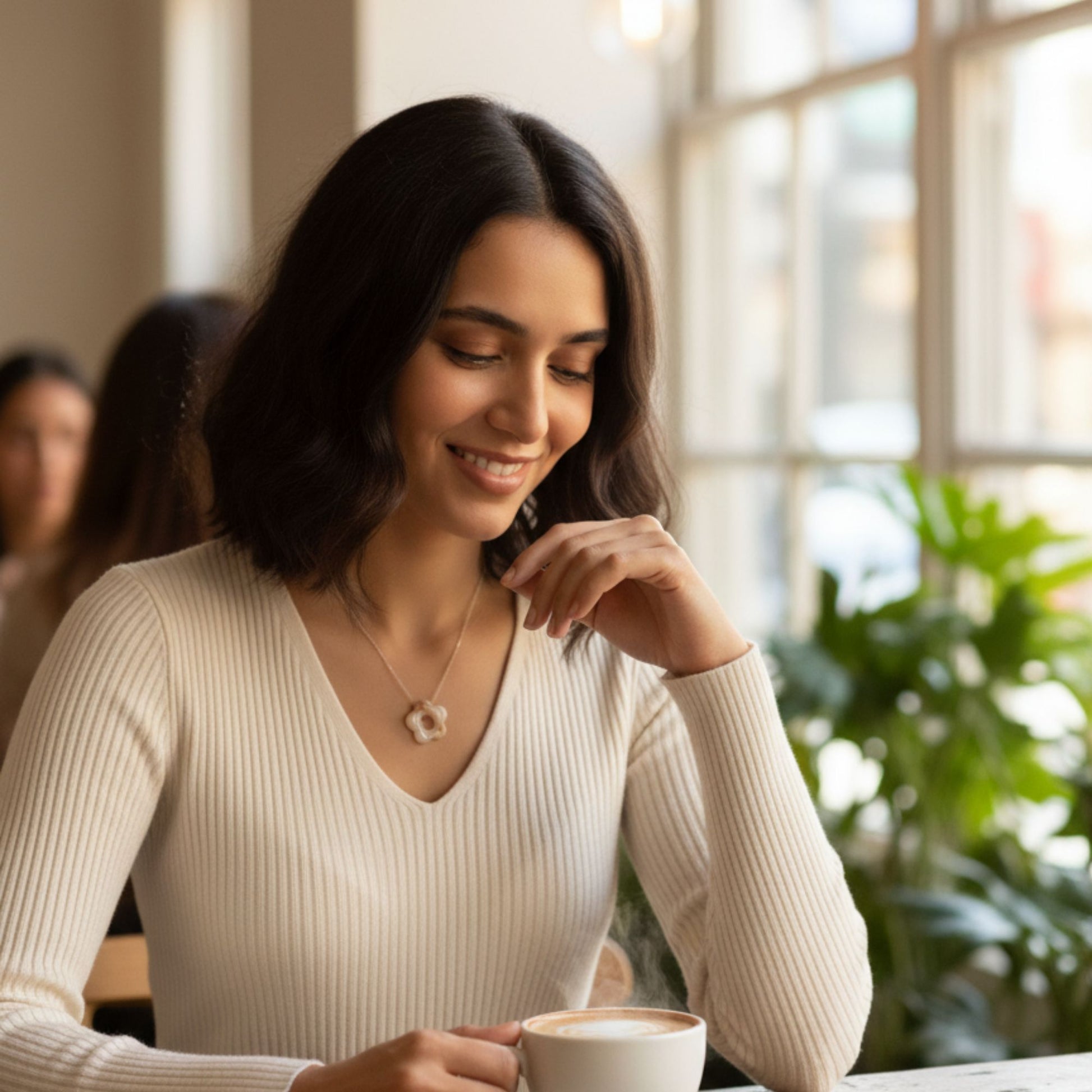 Teinte : blanc nacré perlé avec touches dorées, créant un effet perle romantique délicat et féminin