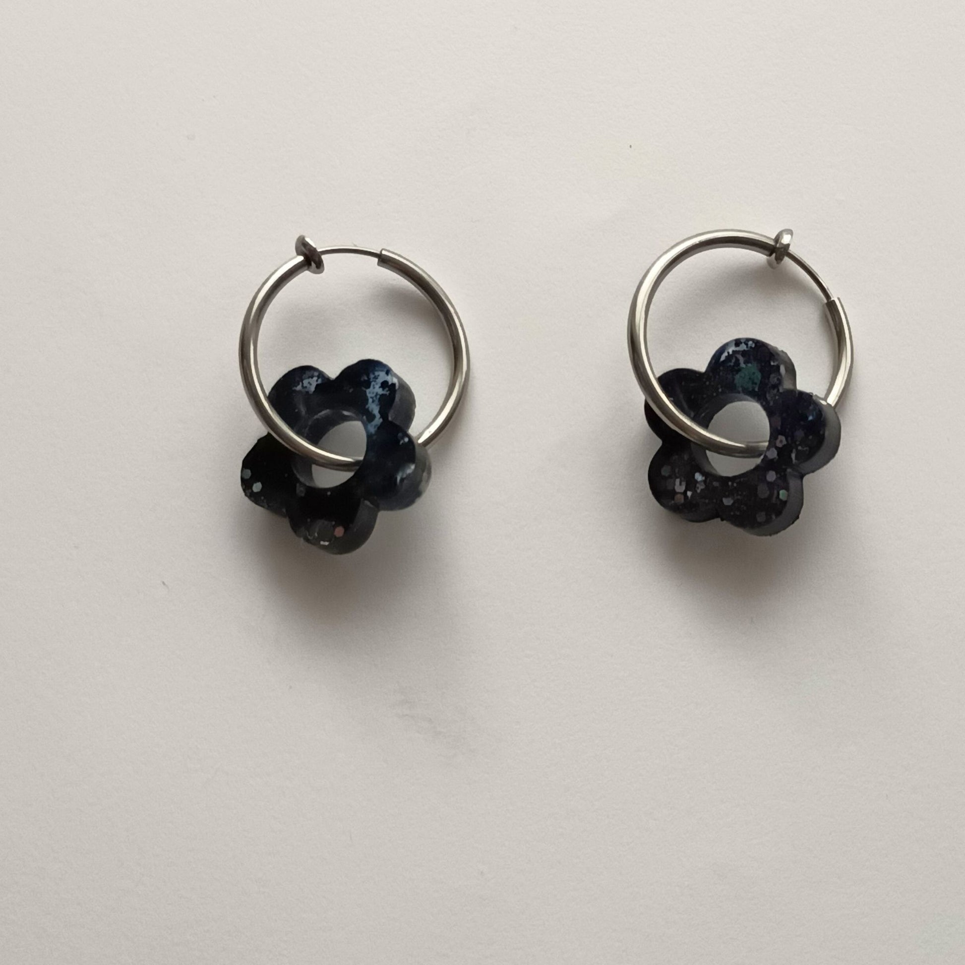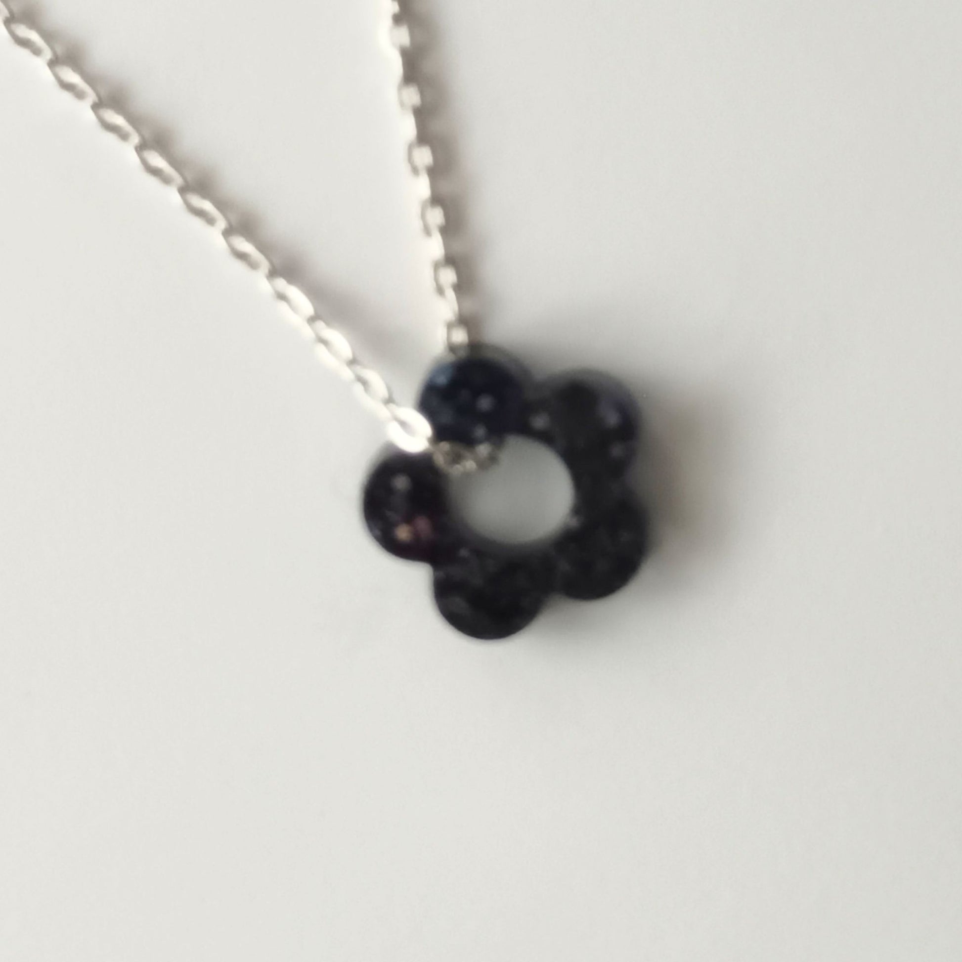 Des fleurs mystérieuses pour vos créations ! Sublimez vos bijoux DIY avec ce lot de 2 breloques en résine en forme de fleurs noires avec paillettes multicolores, entièrement faites main dans mon atelier.