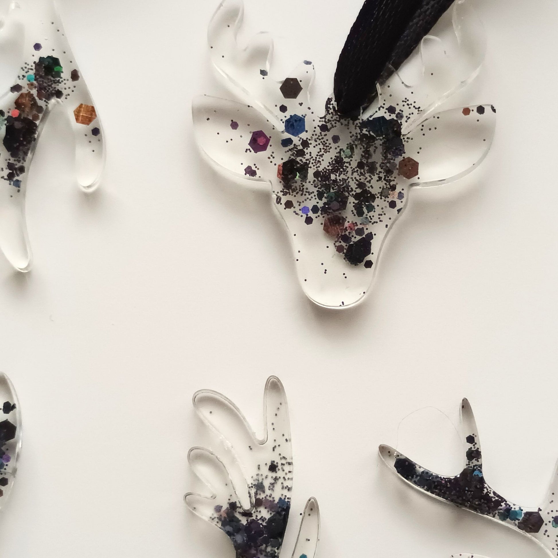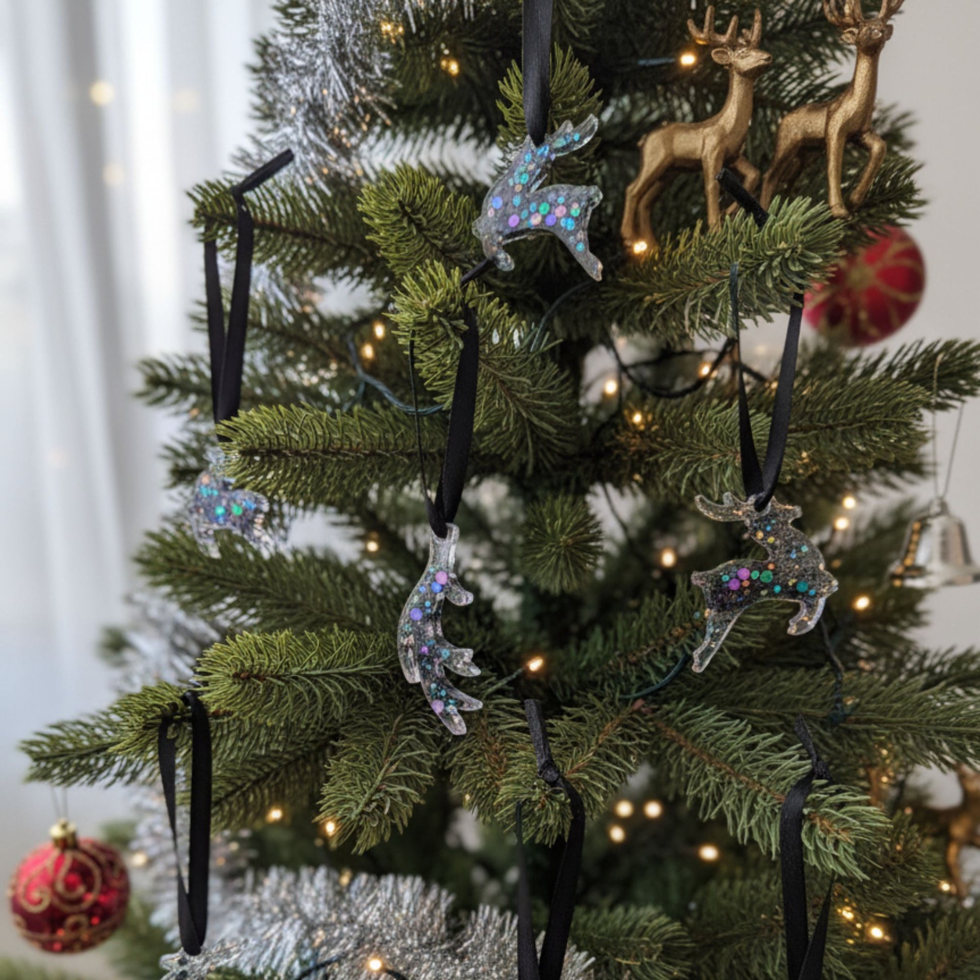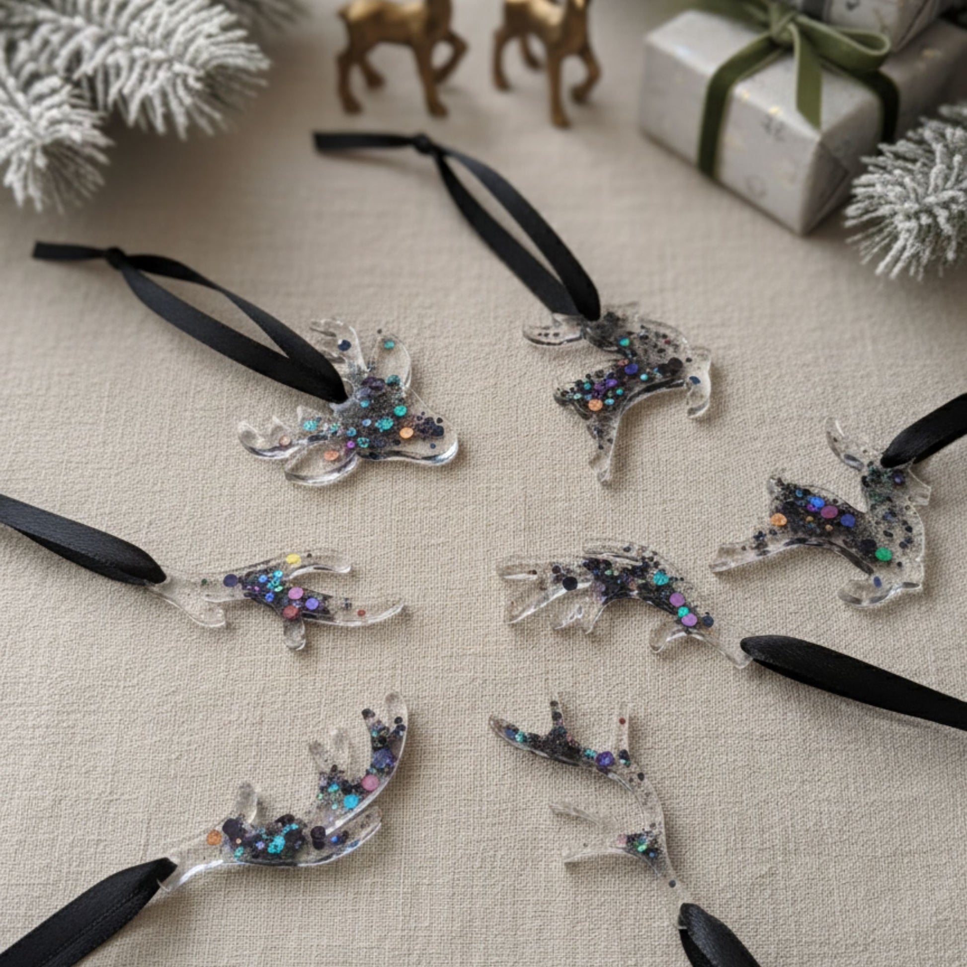 Lot de Suspensions Renne & Bois en Résine Transparente Paillettes
