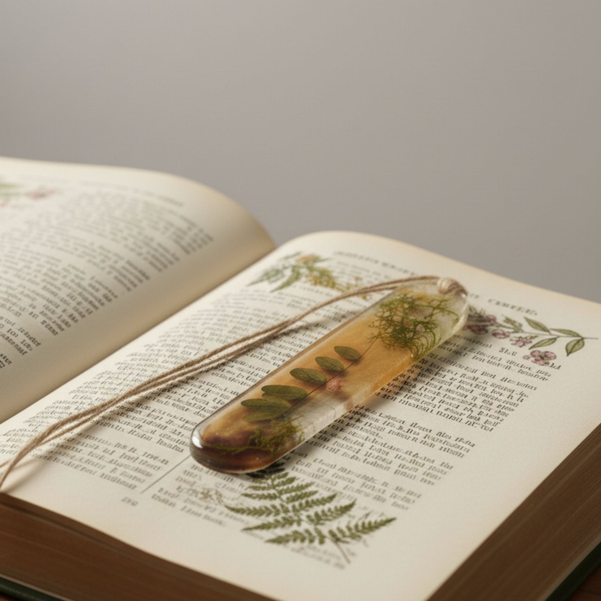 Un jardin botanique pour vos lectures ! Sublimez vos livres avec ce marque-page en résine transparent avec véritables végétaux séchés, mousse et fleurs, entièrement fait main dans mon atelier.