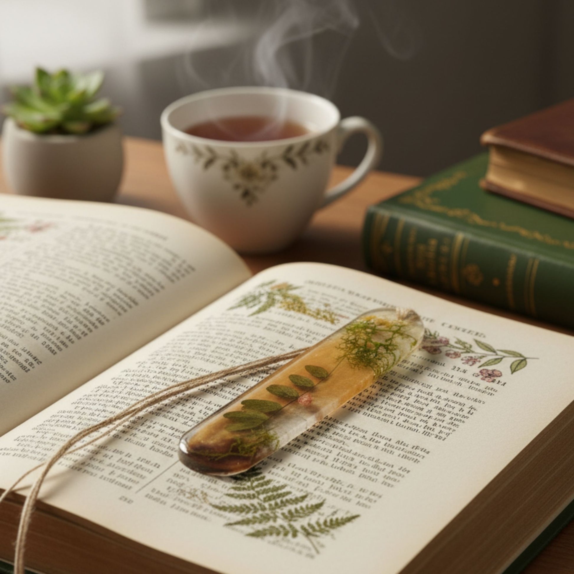 Chaque marque-page est créé avec amour dans mon atelier en France. Je sélectionne les végétaux, les dispose délicatement, coule la résine à la main et façonne chaque élément avec soin. Cette création est unique : je ne réalise jamais deux fois le même modèle. Vous serez la seule à posséder cet accessoire exclusif !