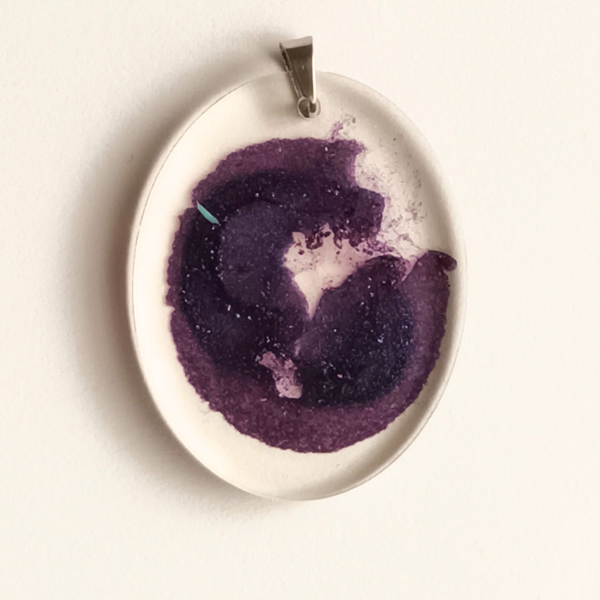 Pendentif résine violet pailleté transparent - Ovale géode améthyste sans chaîne - Bijou artisanal unique fait main