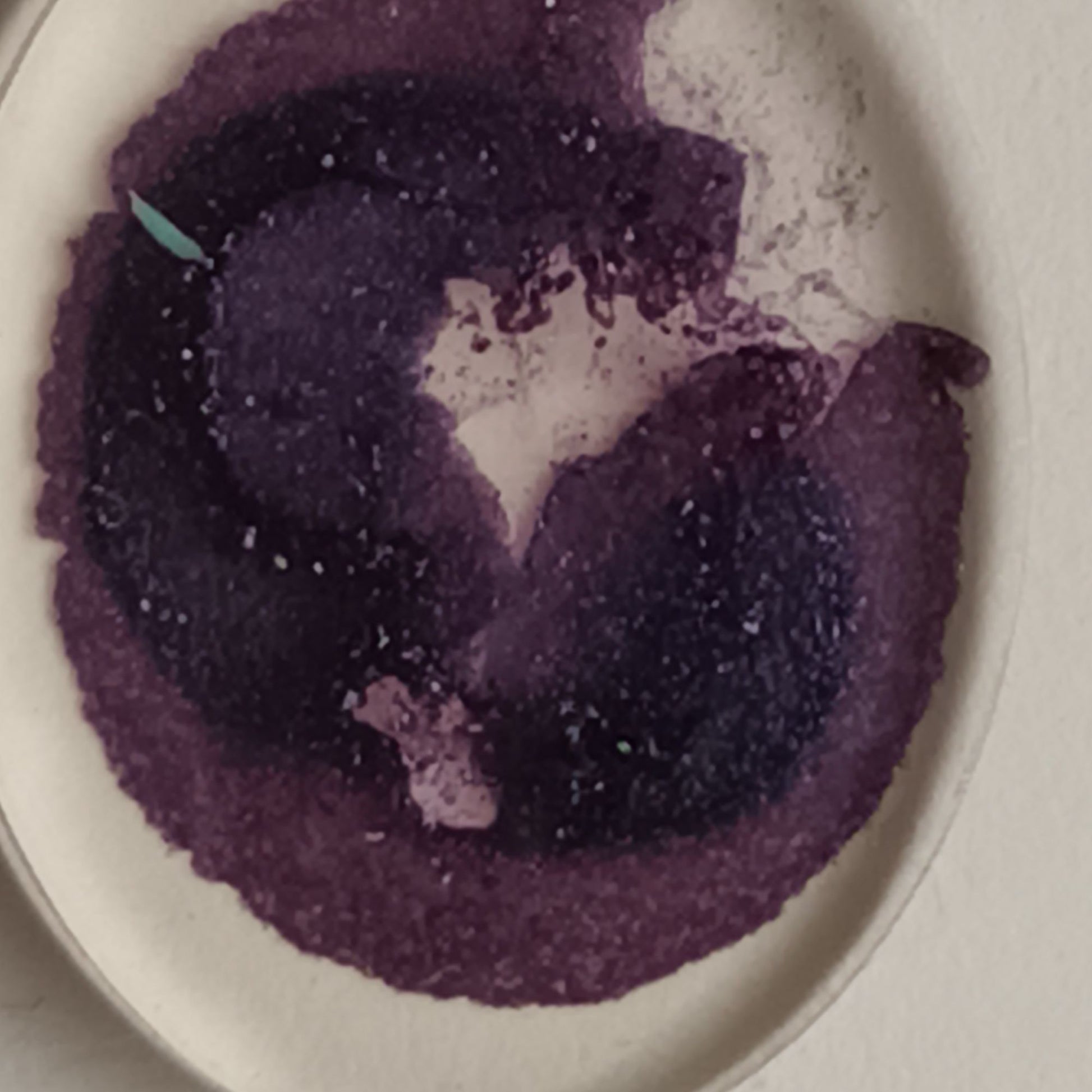 Teinte : violet améthyste profond avec paillettes scintillantes dans un transparent cristallin, créant un effet géode naturelle mystérieux et précieux