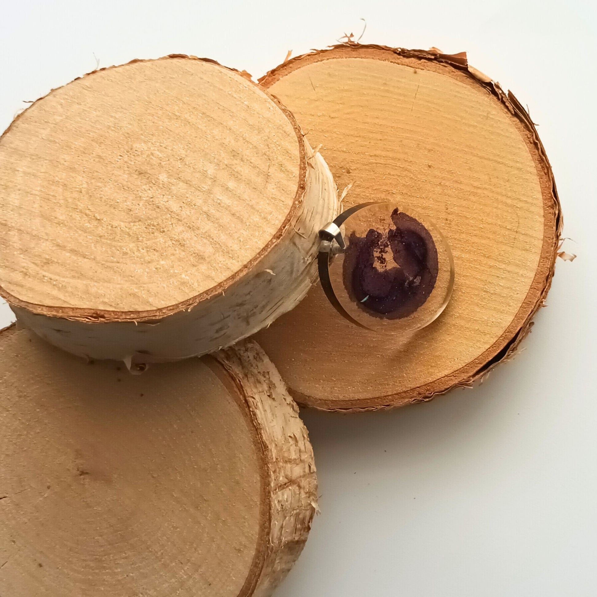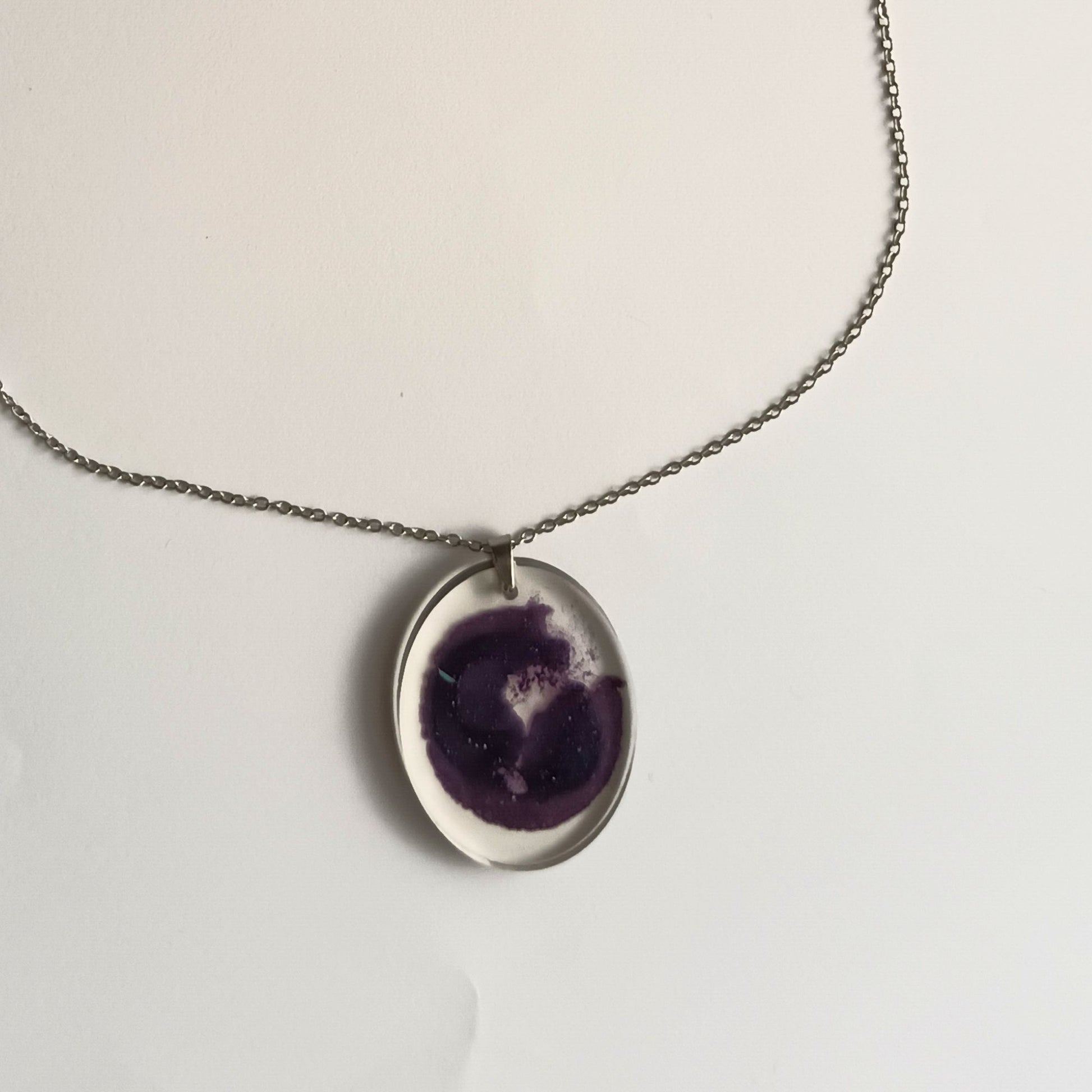 L'éclat d'une géode d'améthyste ! Sublimez votre style avec ce pendentif en résine aux reflets violet profond pailleté avec effet géode cristalline, entièrement fait main dans mon atelier.