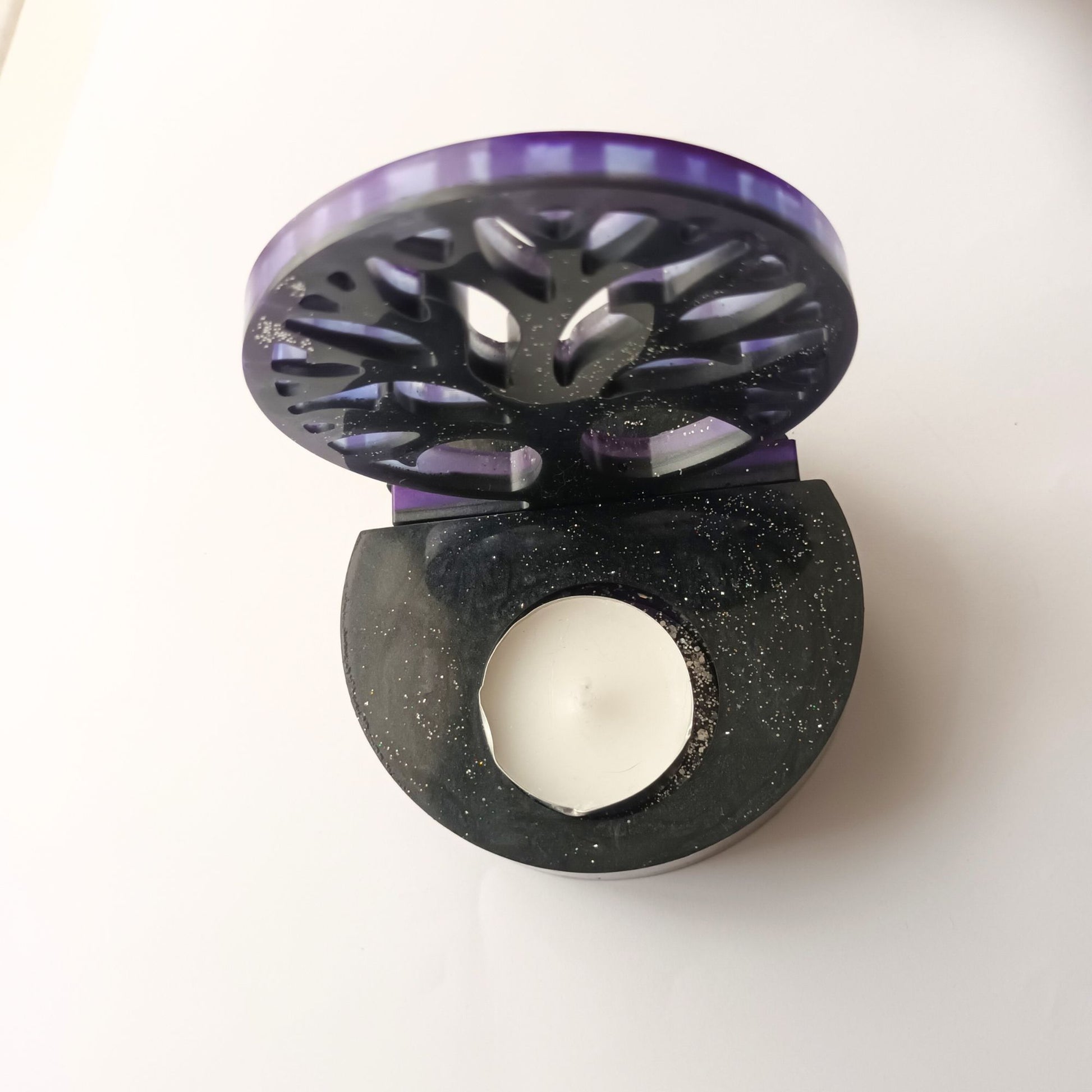 Photophore Arbre de Vie en Résine - Violet Profond & Paillettes Galaxie
