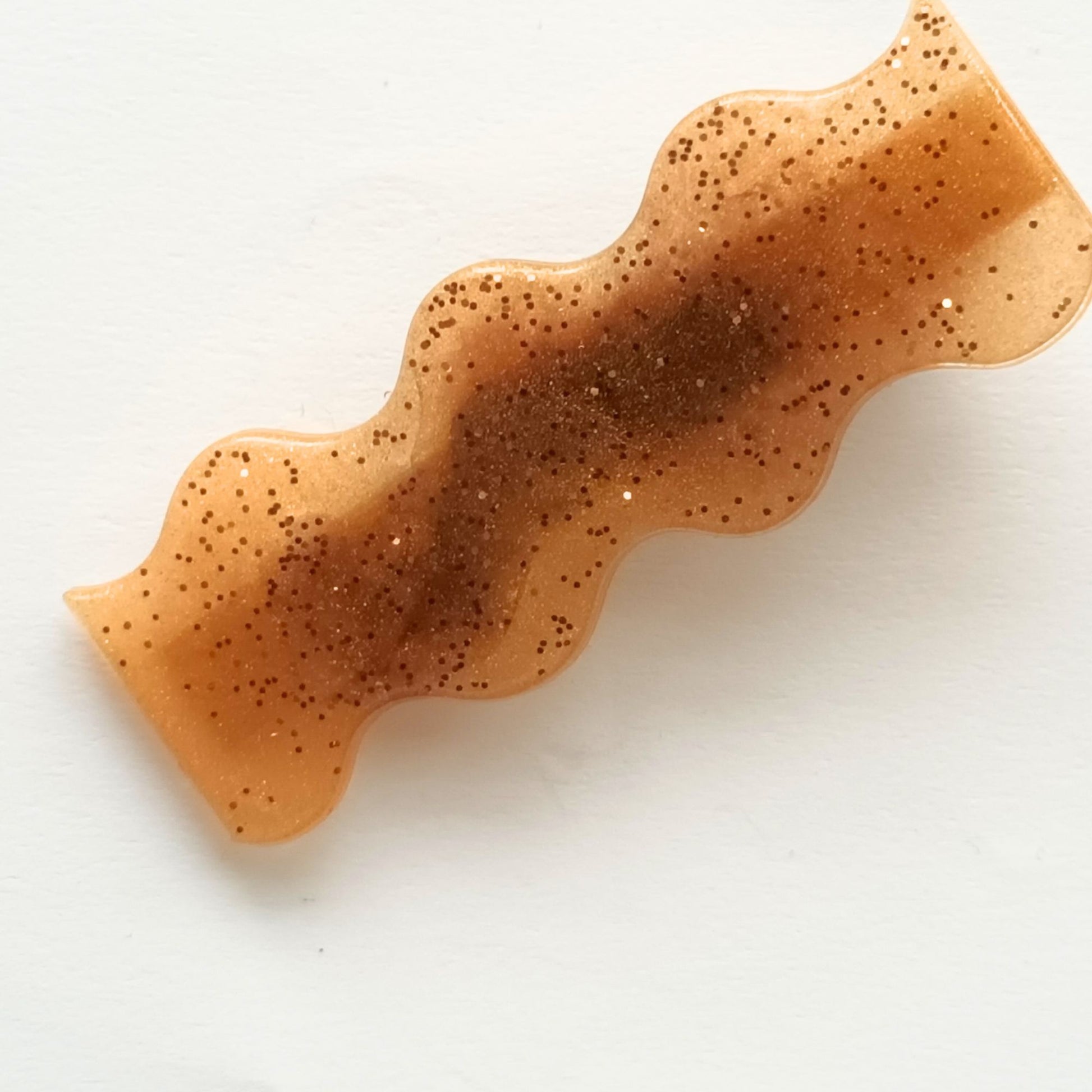 Pince à Cheveux Vague Caramélisée en Résine avec Fines Paillettes Dorées