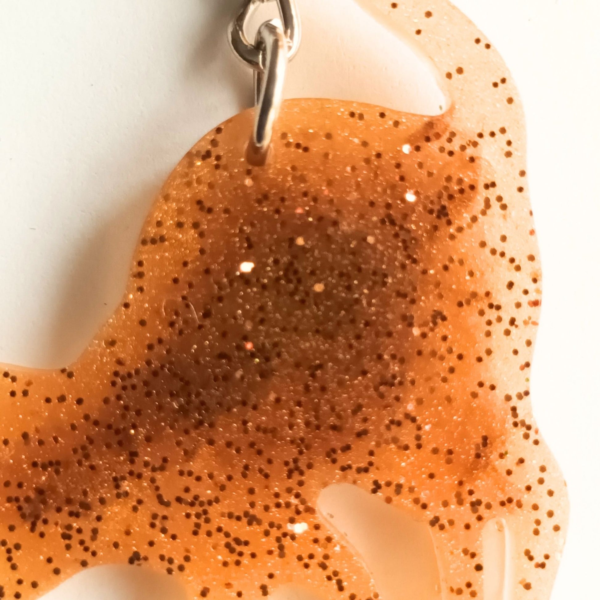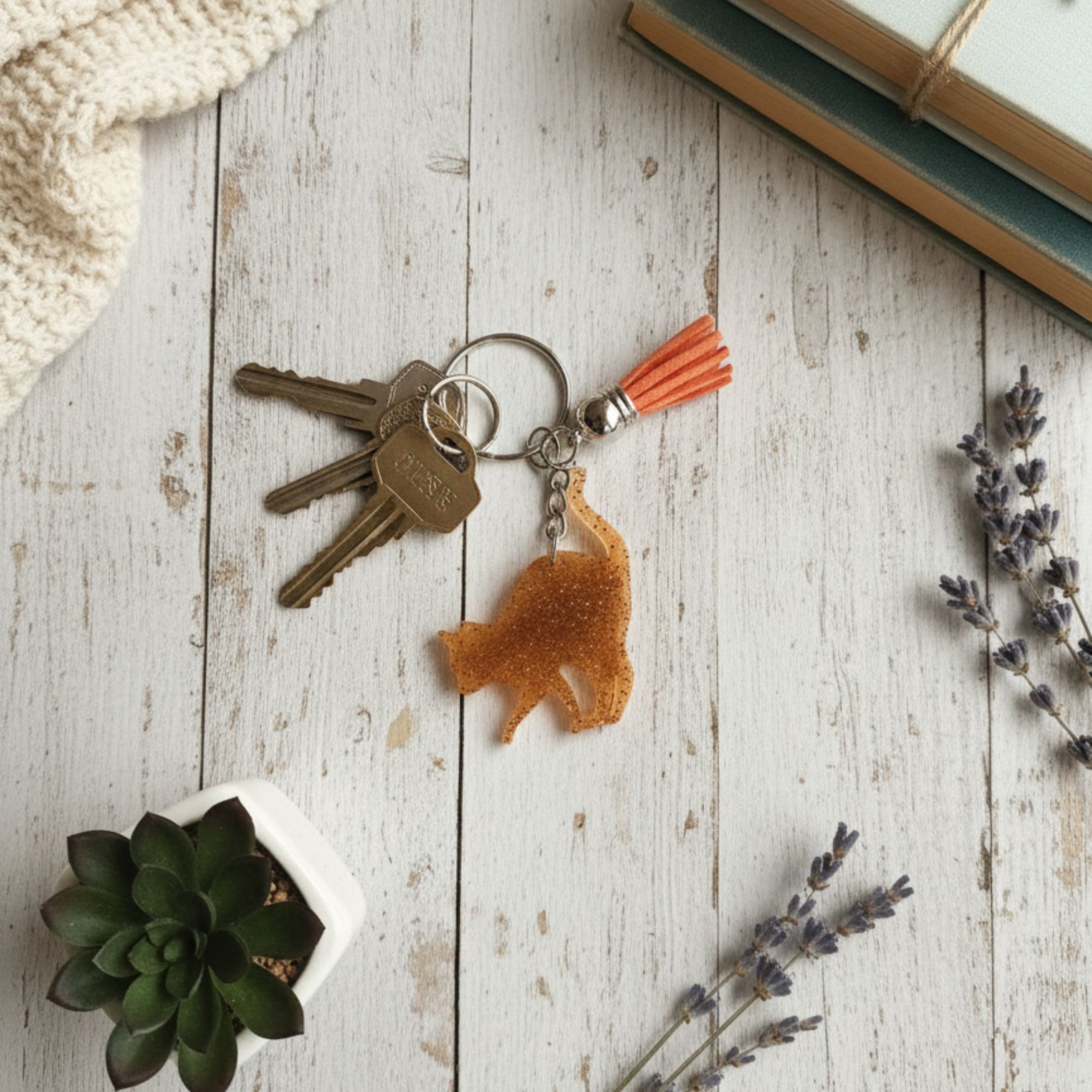 Porte-Clé Chat Silouhette en Résine Caramel Pailletée - Pompom Suédine