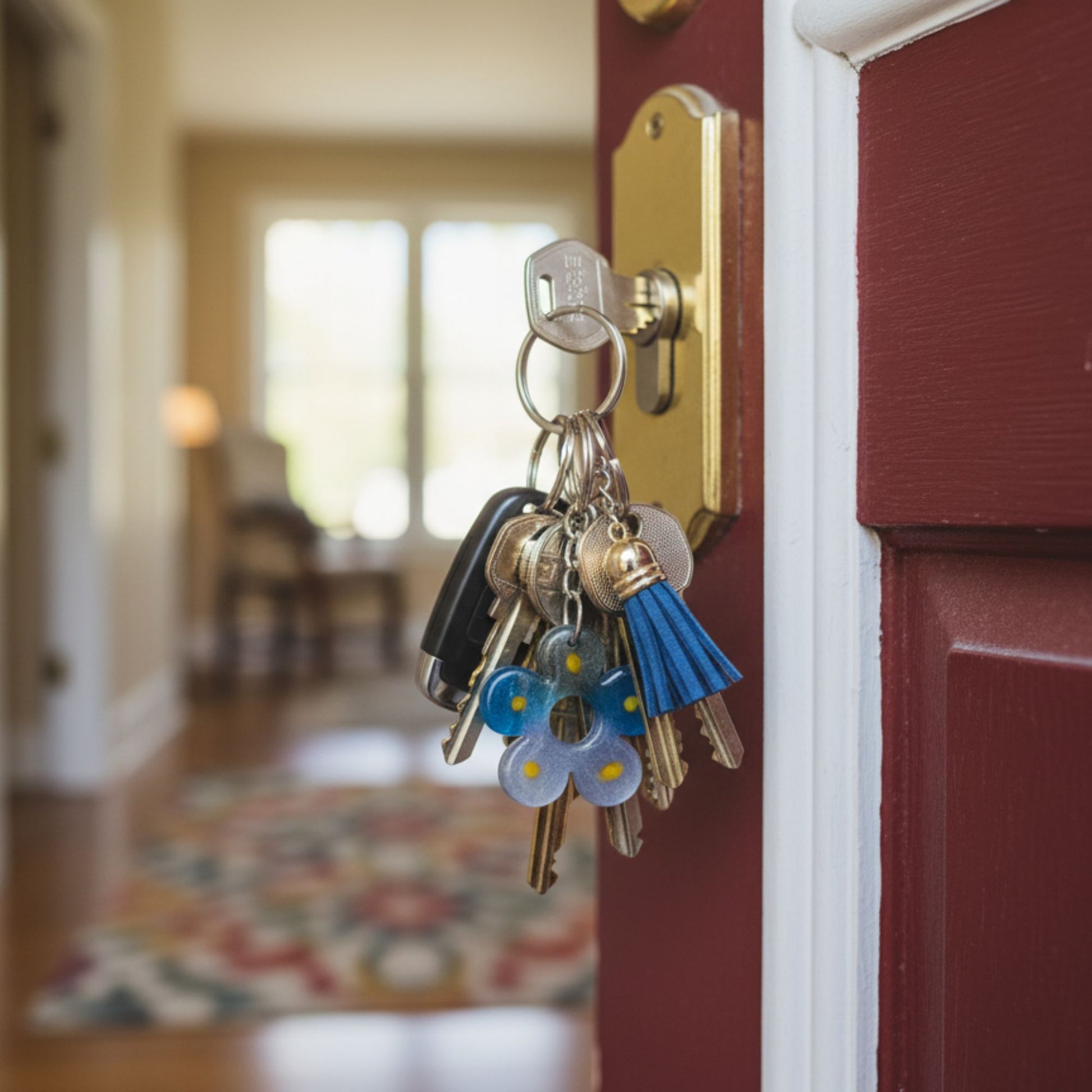 Chaque porte-clé est créé avec amour dans mon atelier en France. Je coule la résine à la main, ajoute les pigments une à une et façonne chaque élément avec soin. Les légères variations font le charme unique de votre bijou - il n'en existe pas deux identiques !